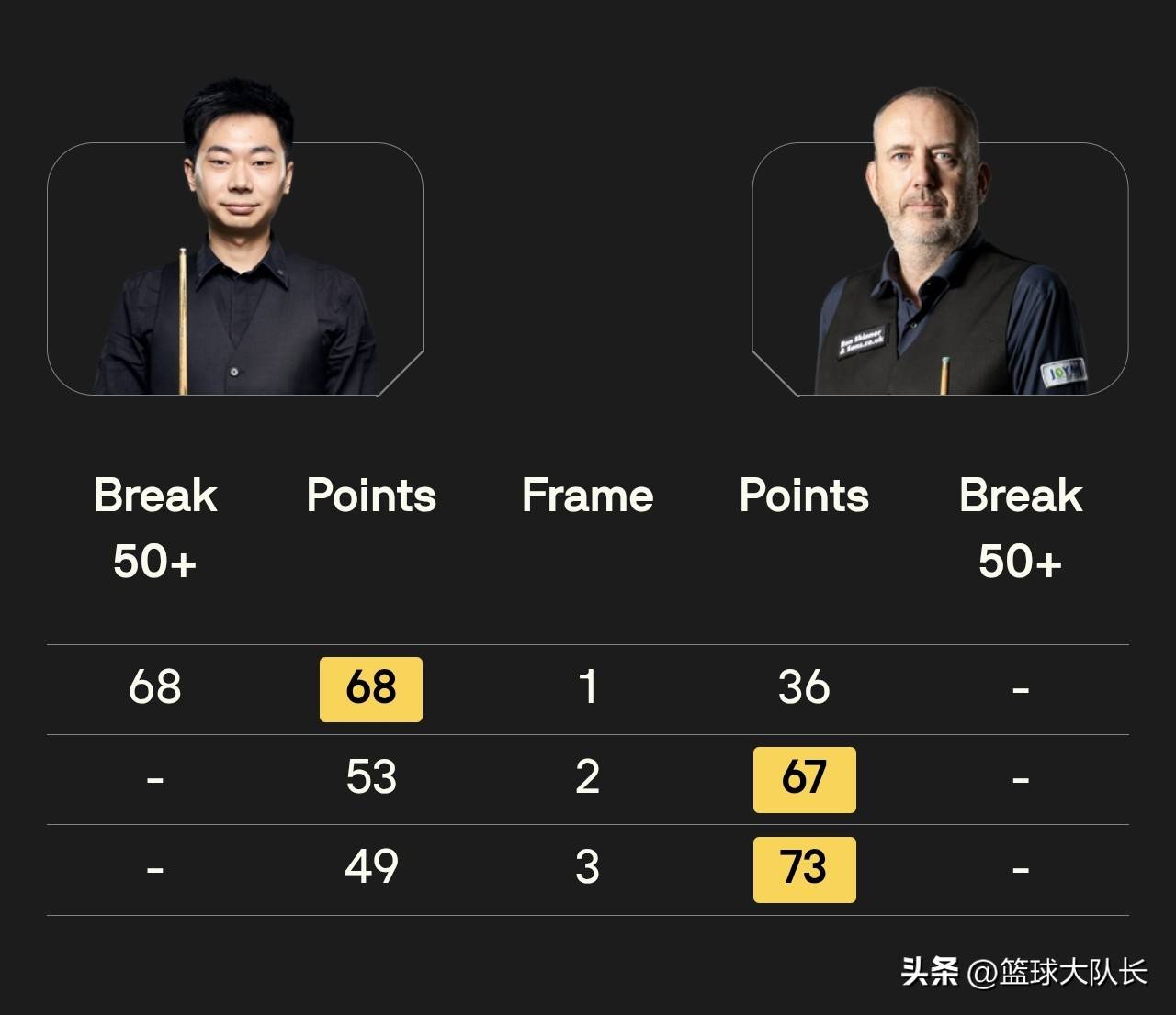 首局里,吕昊天并没有被对手的世界排名吓住,开局就进入状态。双方都还有机会上手得分,但吕昊天一杆打出68分的高分,凭借68-36拿下首局,给观众一个不错的开门红。